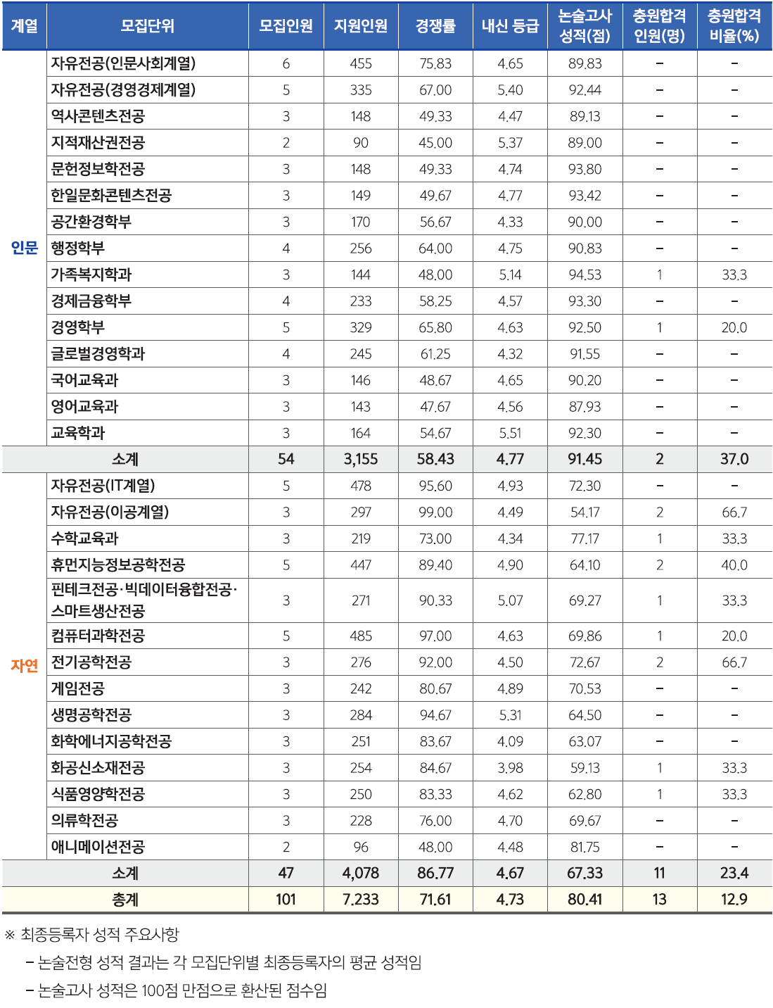 작년에도 논술전형 모집인원이 101명이었는데, 올해도 같은 인원입니다.