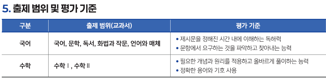 그리고 수학은 수학1, 수학2 전체에서 출제가 됩니다.